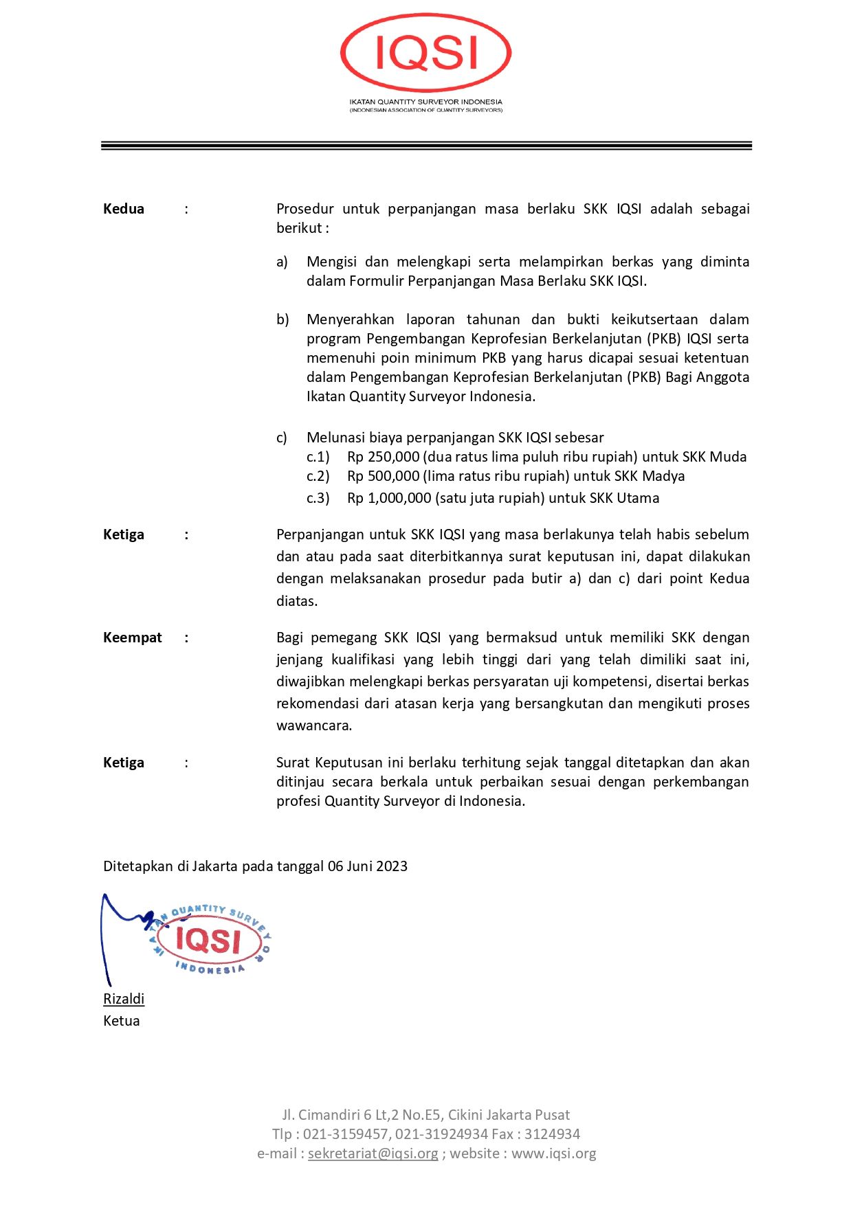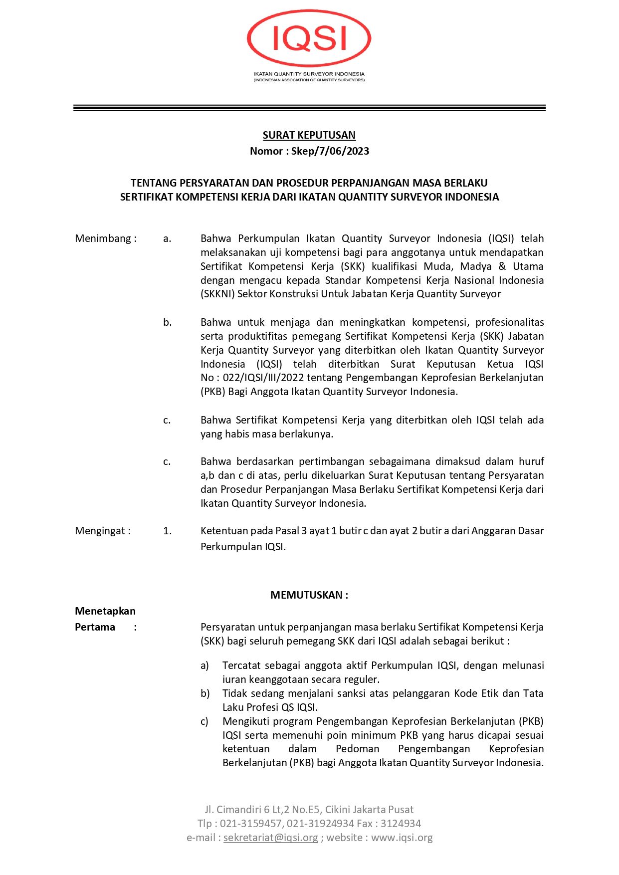 Surat Keputusan Tata Cara Perpanjangan SKK IQSI